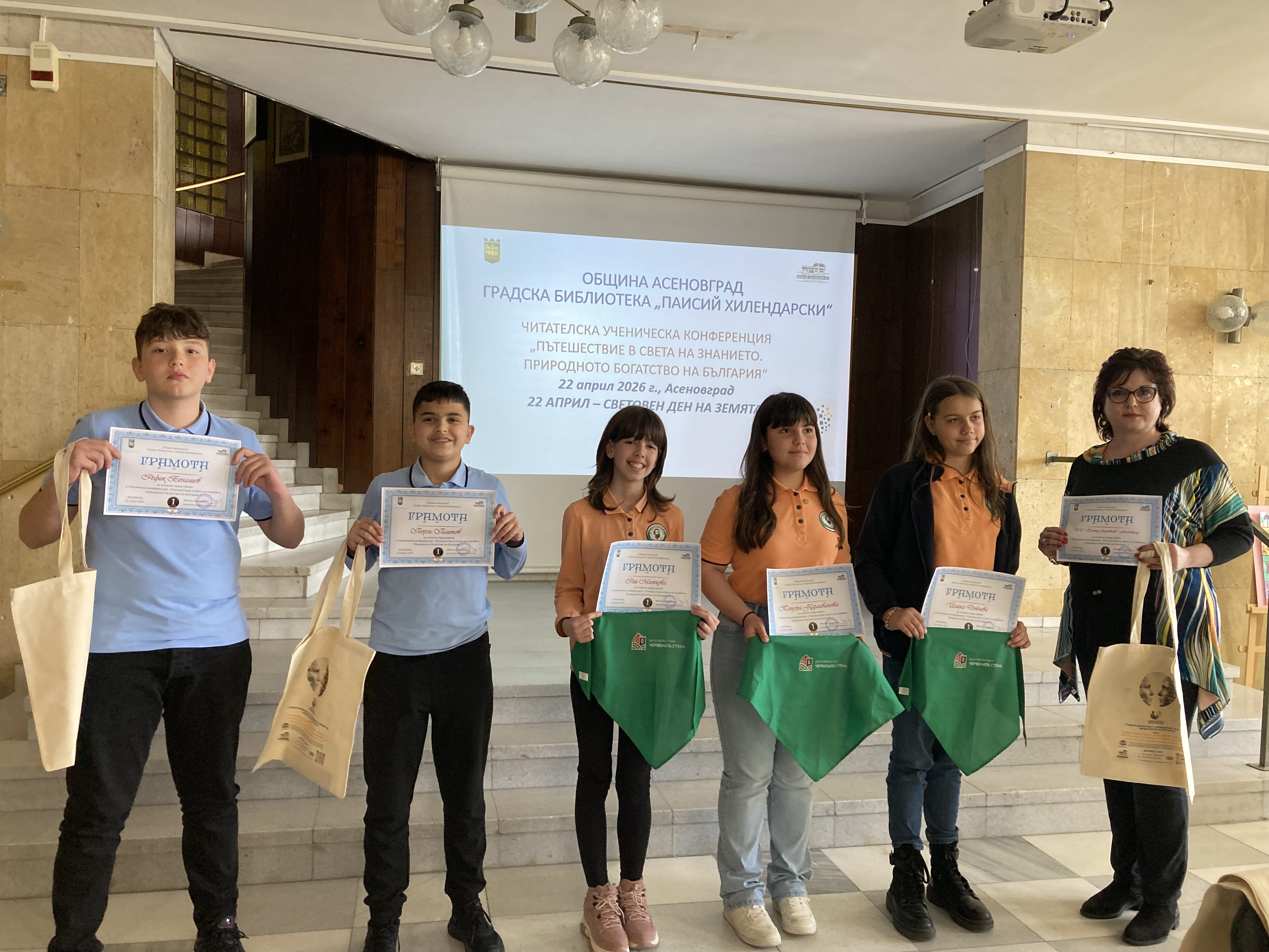 Днес, по повод Ден на Земята, в Градска библиотека „Паисий Хилендарски“ се проведе читателската конференция „Пътешествие в света на знанието. Природното богатство на България“. Събитието е част от програмата на РИОСВ – Пловдив и събра ученици, учители и институции около каузата за опазване на природата.